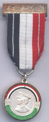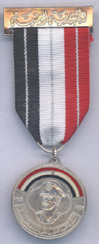 silver stripes between the black and red each of 1 mm. . Instituted: 1982 Awarded: Grades: 1 Class, this is a second model of medals made to commemorate the September 26, 1962 revolution. You can see the commander who lead the revolution on the Obverse, the Reverse shows the date 26 September in Arabic and a hand holding a lit Torch Price: $ 60 Rare |